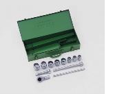 in Metal Box; Contents: Universal Joint, Extension 2, Extension 6, Holder with Plastic Handle, Reversible Ratchet DIN 3122, Socket Set: E4, E5, E6, E7, E8, E10 for Outside Torx; Socket Set: TX10, TX15, TX20, TX25, TX27, TX30, TX40 for Inside Torx